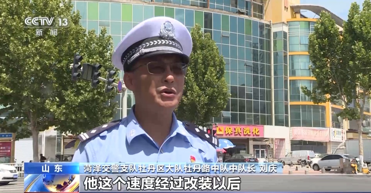 菏泽交警支队牡丹区大队牡丹路中队中队长 刘庆:他这个速率经过改装以后,这个电摩能达到100公里每小时,加到最高速率能达到140公里傍边。
