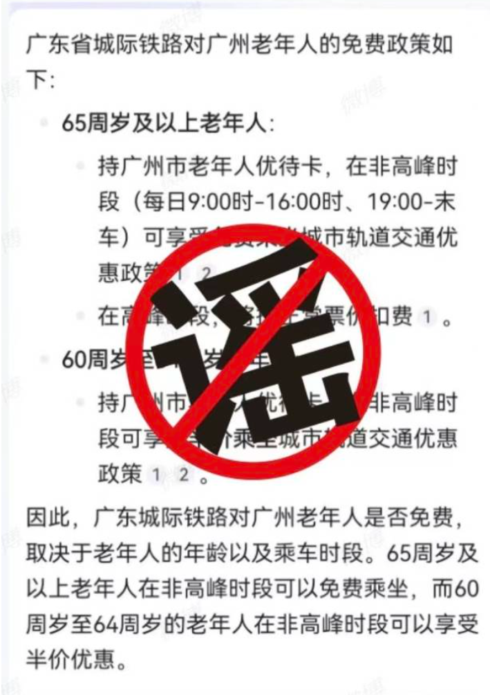 27日,广东城际发布音讯辟谣,称网传对广州老年东说念主免费策略为假。确定>>